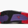 In 2018 Jordan Brand took the original black, purple, and red palette from the Air Jordan 7 and used it to create the Air Jordan 4 “Raptors.” The fierce colorway was rumored to be designed by Drake, drawing inspiration from his beloved Toronto Raptors. The Air Jordan 4 “Raptors” has a premium black suede construction with a purple speckled midsole and bright red accents.