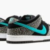 The Nike SB Dunk Low Pro ‘Elephant’ imagines what an official collaboration between atmos and Nike SB might look like using some of the Japan based sneaker boutique’s beloved collaborations with Nike as inspiration. A Fall 2020 release, the ‘Elephant’ colorway of the Dunk is undoubtedly a nod to the Air Max 1 and Air Jordan 3 created by atmos. The upper features white leather on the perforated toe and black synthetic nubuck on the mid-panel and collar. A Clear Jade leather Swoosh breaks up the neutral design. The same can be said for the robust elephant print pattern found on the forefoot and heel that is inspired by the look of the original Air Jordan 3. Additional turquoise accenting comes into play on the ‘Nike’ embroidery on the heel and on the Nike SB branding found on the black nylon tongue tag. Release date: November 11, 2020.